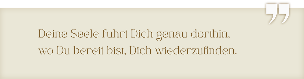 Und auch wenn Du Dein Thema noch nicht klar benennen kannst – Deine Seele weiß den Weg. Alles, was Dich ruft, hat hier Platz. Alles geschieht in Deinem Tempo. Deine Seele zeigt nur das, wofür Du bereit bist.